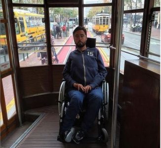 Concludiamo con la foto di Simone a bordo di un tram ATM, la quasi centenaria famosa vettura “carrelli 1928”, di cui una è appena stata dedicata alla scomparsa Carla Fracci. Ma come è possibile che Simone sia riuscito a salirci?! Sorpresa, la foto è stata scattata a San Francisco a cui ATM ha venduto diverse “carrelli”…ma mentre a Milano i disabili non possono salire su questi tram e su intere linee, a San Francisco i mezzi sono stati resi accessibili.